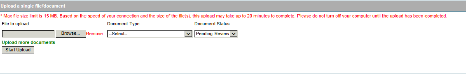 1) Select “Upload Document” from the Claim Actions dropdown. Click “Go”. The following pop up will be displayed.